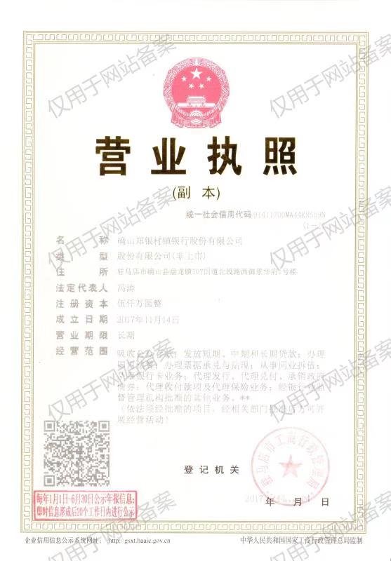 確山鄭銀村鎮(zhèn)銀行股份有限公司